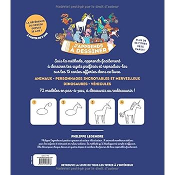 Retrouve dans cet ouvrage tes sujets préférés : des animaux, des dinosaures, des personnages incroyables et merveilleux, et des véhicules. 72 modèles en pas-à-pas, à découvrir ou redécouvrir ! Licorne, moto de police, cochon, carrosse ou tricératops... Suis la méthode et apprends facilement à dessiner tous ces modèles. En bonus : 15 cartes sont fournies pour offrir tes dessins et faire plaisir à tes proches !